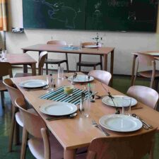 Groß ist die Freude über fünf Tische und zwanzig Sessel, die für die Schulküche angekauft wurden und dieser nun ein gemütliches Aussehen verleihen. Die alten Möbel, die bunt zusammengewürfelt waren, haben nun endlich ausgedient!